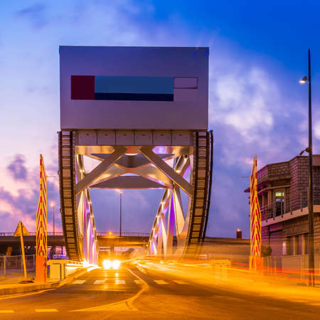 Pont Sadi Carnot and traffic at sunrise at Sète in Herault in Occitanie, France