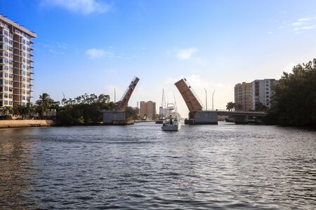 Open drawbridge in Fort Lauderdale Bridge , Florida, USA