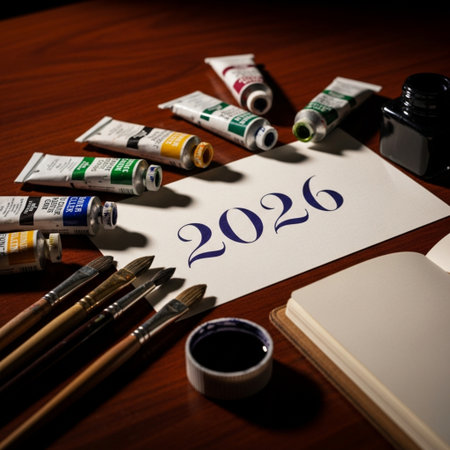 Stunning artistic depiction of the year 2026 with vibrant paint splashes on a black canvas, perfect for celebrations and events, showcasing creativity and modern design.