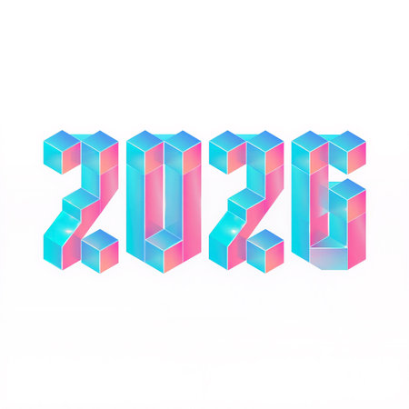 A creative depiction of the year 2026 in bold colors, welcoming the New Year joyfully.
