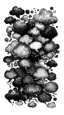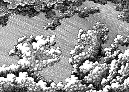 Art drawing black and white of cloud on sky