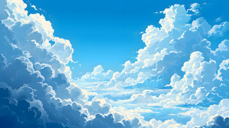 Beautiful blue sky and white cumulus clouds abstract background. Cloudscape background. Blue sky and fluffy white clouds on sunny day. Nature weather. Bright day sky for happy day background.