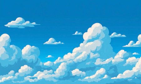 Bright blue sky and cumulus clouds on a summer day.