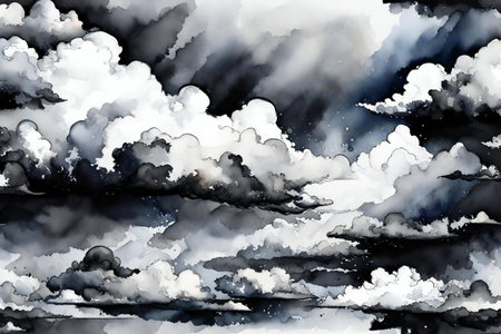 black sky and white clouds landscape