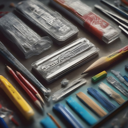A collection of essential drafting tools lies ready on a designer's workbench.