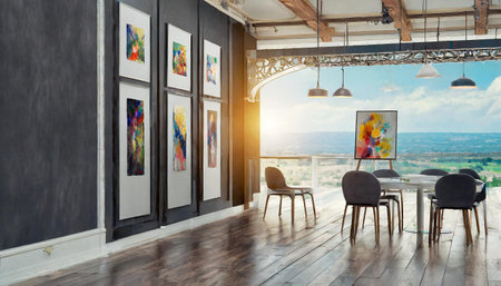 Modern art gallery showcasing vibrant artwork on display, creating an inspiring and immersive viewing experience for visitors.