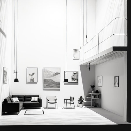 airbnb with minimalistic design, featuring black and white lines for a contemporary feel. minimalist airbnb rental, black and white lines, modern design. minimalistic airbnb, black and white minimalist lines, contemporary rental. minimalist rental, black and white lines, modern airbnb design. ai generated