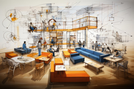 vibrant blurred interior design plans illustration eclectic living, space energy, movement room vibrant blurred interior design plans