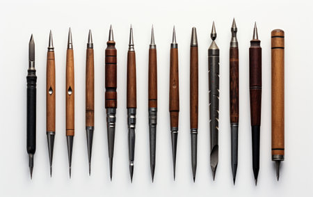 This image showcases a series of precision tools set against a marble surface, emphasizing their designs and tips that are perfect for various artistic and technical projects.