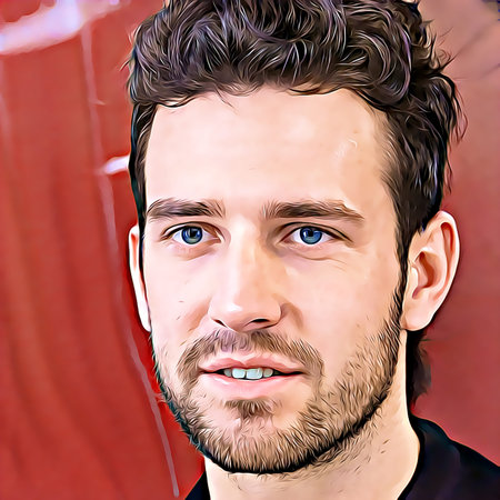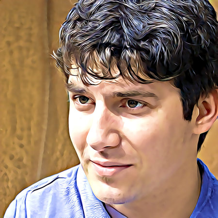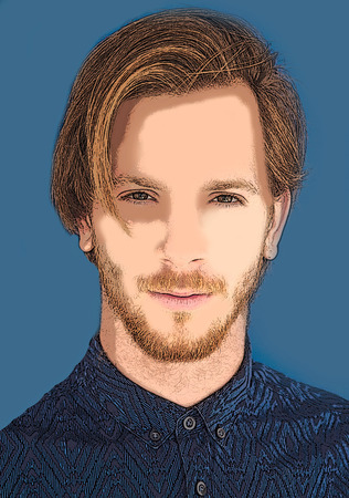 Geometric portrait of a young caucasian male with vibrant colors and abstract angles.