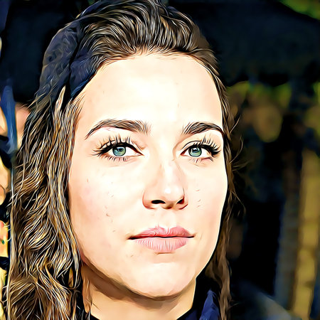 Cartoon-style portrait of person's face.