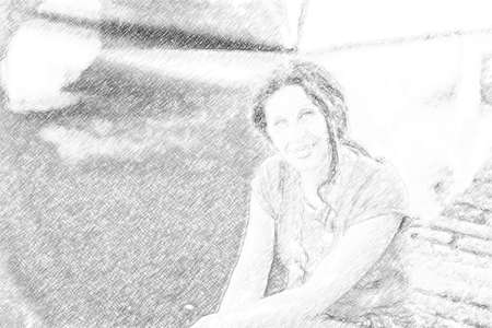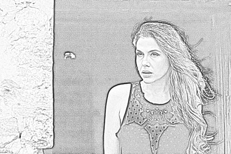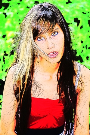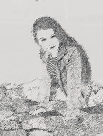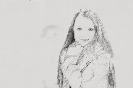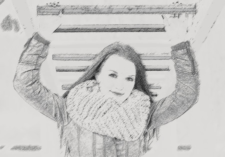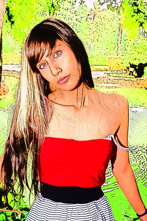 Young pretty woman in park. Effect pencil