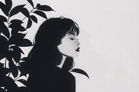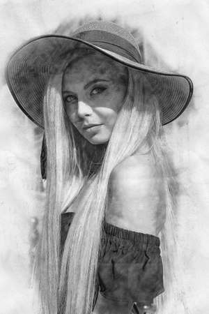 Portrait of a beautiful young woman in black and white. 3d rendering