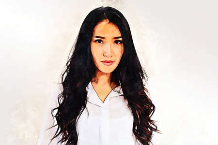 Abstract happiness young woman smile portrait watercolor illustration painting background.