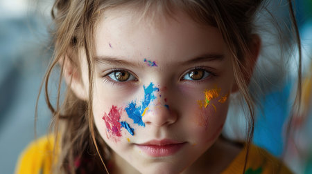 portrait cheerful childhood children joy fun art paint face happiness. Generative AI.