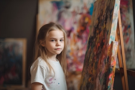 portrait of an adorable little girl standing in a creative environment, created with generative ai