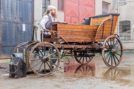 ZAMBERK, CZECHIA - SEPTEMBER 15, 2018: Man tends a steam car in the Old Machines and Technologies Museum (Muzeum starych stroju a technologii) in Zamberk, Czechia.