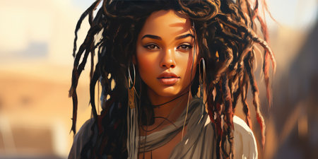 beautiful illustration, African woman with dreadlocks. portrait of a woman. Generative AI