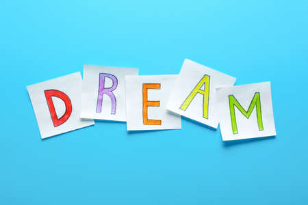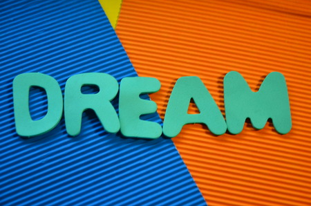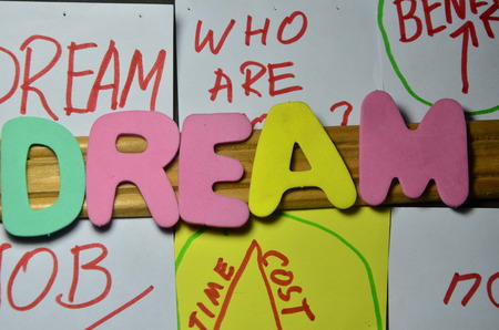 Dreams handwriting text close up isolated on yellow paper with copy space.