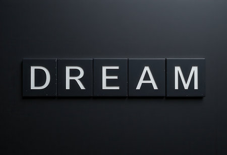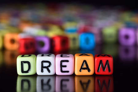 Inspiration concept: black and white letters forming the word dream on a white background for motivation and creativity