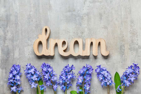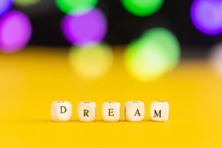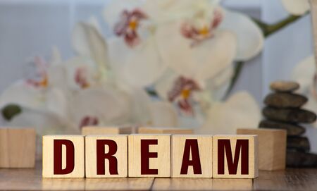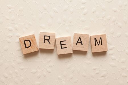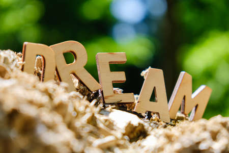 Wooden letters spelling out the word dream on nature background. Inspirational and motivational concept.
