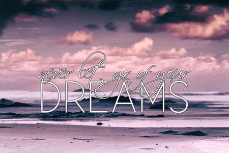 Never stop dreaming words printed on wooden blocks on soft pink. Positive thinking mindset concept