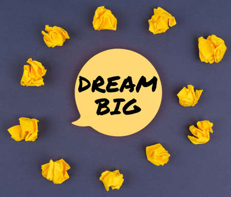 Business and Economics. Among the crumpled pieces of paper lies a sticker sheet with the inscription - DREAM BIG