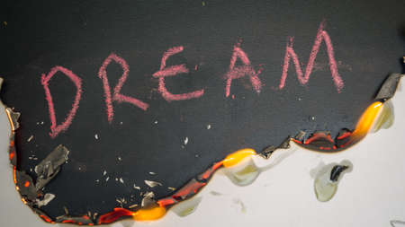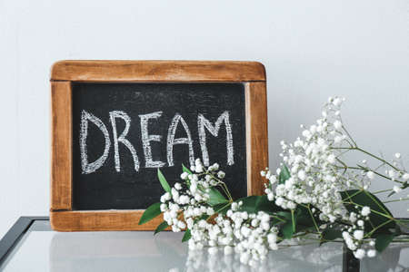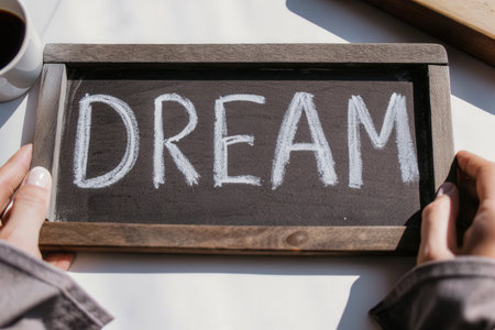 Inspirational Word Dream Written on Chalkboard Held by Hands, Symbolizing Hope