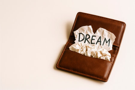 Photorealistic leather wallet with a DREAM paper inside. Space for text