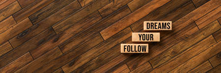 cubes with message FOLLOW YOUR DREAMS on wooden background - 3d illustration