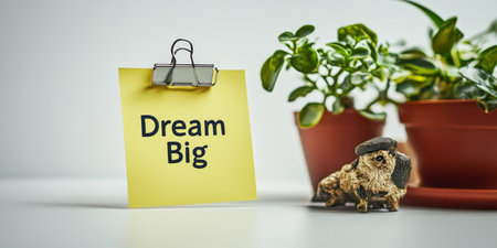 Inspiring Yellow Memo Post Note with Dream Big Message and Indoor Succulents for Motivation