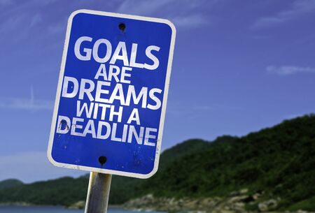 Goals are dreams with a deadline sign with beach background