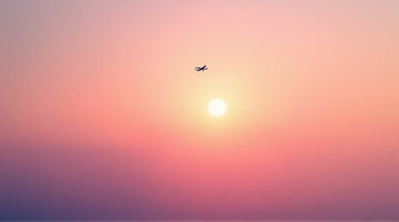 A minimalistic silhouette of an airplane in flight against a vibrant sunset sky. Perfect for travel and aviation brands.