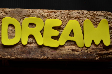 Dream letters on a vintage wooden background