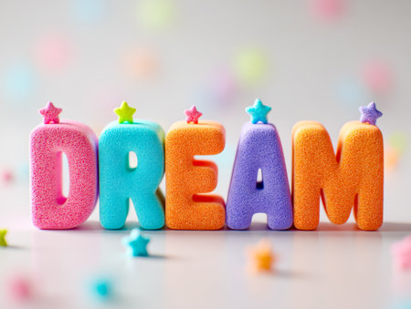 Colorful letters spell the word dream in vibrant shades for a cheerful decor setting
