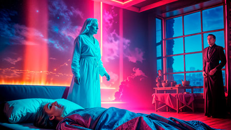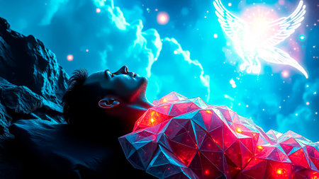 The soul of a deceased person ascends to heaven. Afterlife, meditation and dream concept.