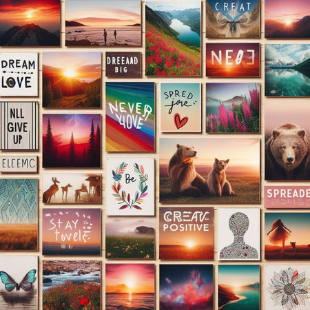 A vision board filled with images, quotes, and goals for personal and professional growth
