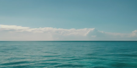 AI Generated. Serene Ocean Horizon Calm Teal Sea and Soft Blue Sky