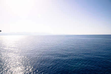 Beautiful seascape evening sea horizon and sky. Tranquil scene. Natural composition of nature. Landscape. View from yacht.