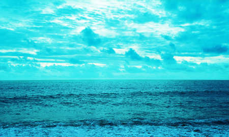Beautiful seascape with blue sea and sky. Filtered image processed vintage effect.