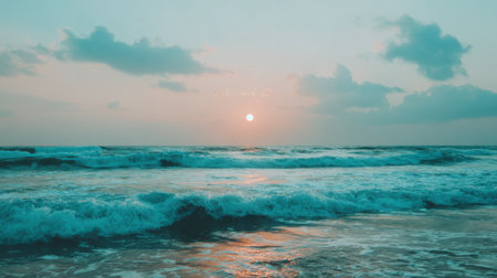 AI Generated. Sun Glimmering on Rippling Ocean Water at Dusk