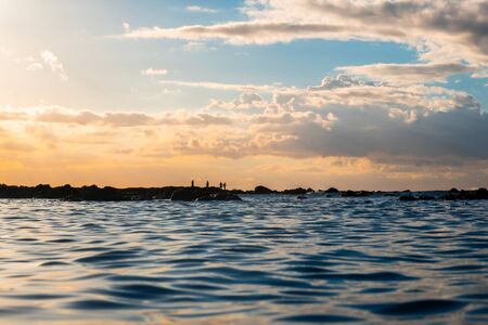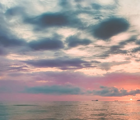 Beautiful cloudscape over the sea at sunset time. Nature background.