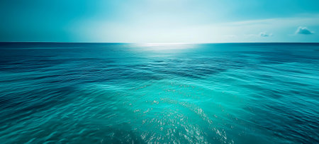 Panorama landscape of empty tropical turquoise sea and sky blue background. Generative AI.