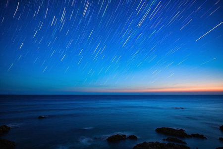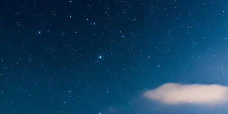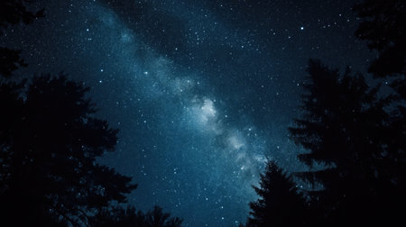 A breathtaking view of a starry night sky filled with twinkling stars and shimmering cosmic dust against a rich dark blue background, evoking calmness.
