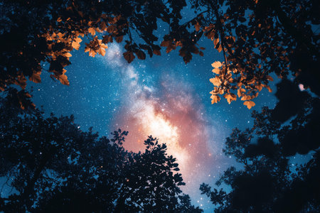 against the background of the starry sky. shooting stars fly between the clouds and outer space, connecting the mundane and the galaxy. nebula and defocusing of the composition. the hazy galaxy effect