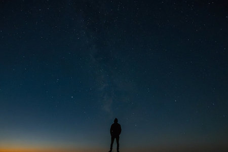 Under the vast expanse of the Milky Way, a solitary figure contemplates the boundless wonders of the universe.
