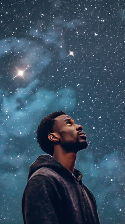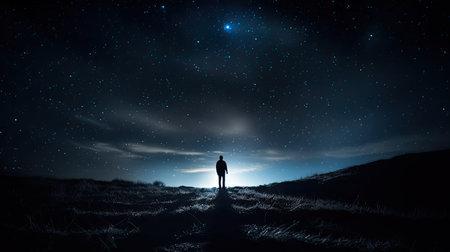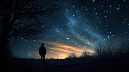 Generative AI : Man looking at the stars Alone man looking at starry sky Night sky