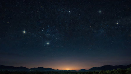 A view of a dark night sky showcasing numerous stars and the Milky Way galaxy, A starry night sky with the Milky Way stretching across it