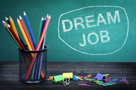Dream Job text on school board and group of pencils