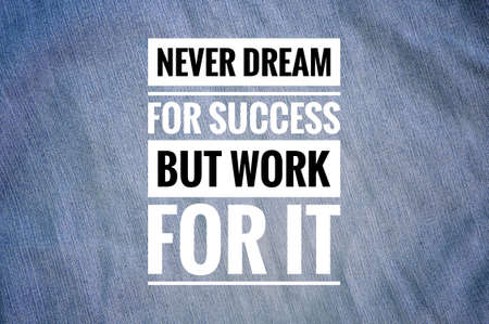 Motivational quote written with text NEVER DREAM FOR SUCCESS BUT WORK FOR IT.